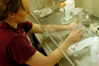 Quist's research focuses on determining the total content of phenols (a class of chemical compounds) produced in vitro under varying light and temperature conditions by phalaenopsis, a genus of approximately 60 species of orchids. Other student researchers include Steve Eichten, studying adjustments with light quality in orchid propagation, and Nick Nelson, researching ways to manipulate the germination process of Ladyslippers. Mark Strefeler, associate professor and department chair of biology, leads the research team.